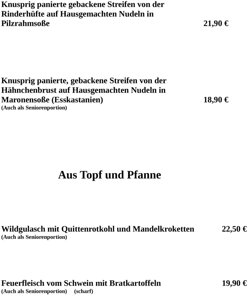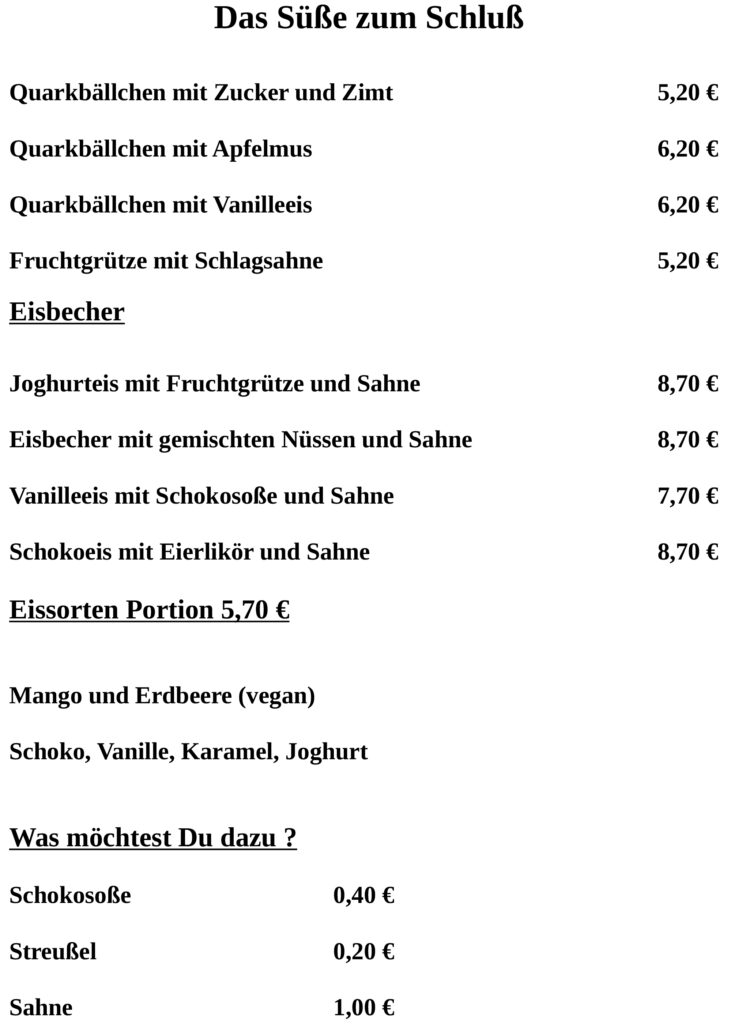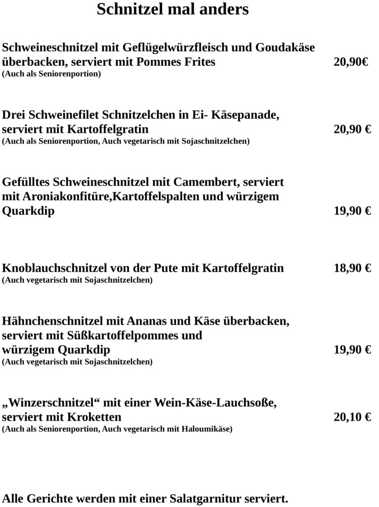 Unsere Speisekarten